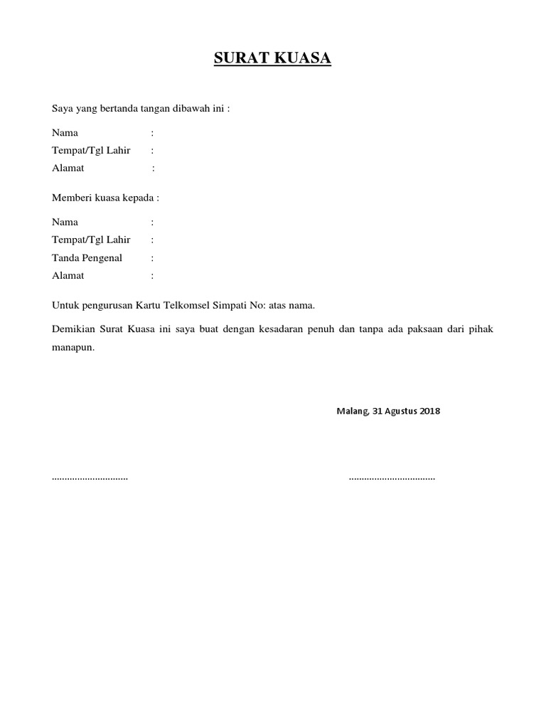 Contoh surat kuasa mengurus simcard yg hilang. We did not find results for: Check spelling or type a new query. Maybe you would like to learn more about one of these?